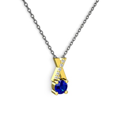Lab safir ve pırlanta 925 ayar altın kaplama gümüş kolye (0.075 karat, 40 cm gümüş rolo zincir)