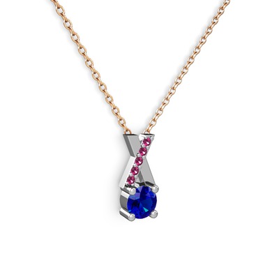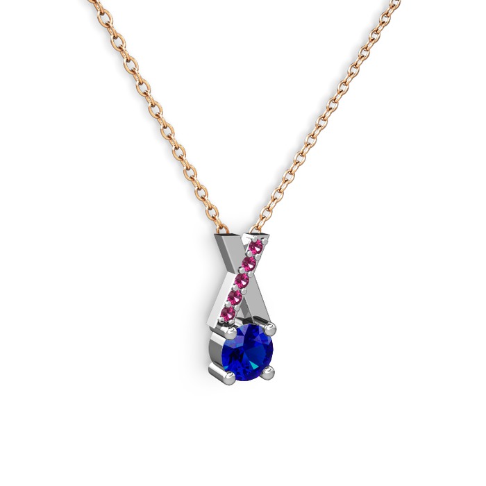 Lab safir ve rodolit garnet 18 ayar beyaz altın kolye (40 cm rose altın rolo zincir)