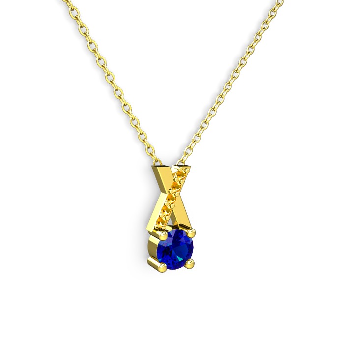 Lab safir ve sitrin 18 ayar altın kolye (40 cm gümüş rolo zincir)