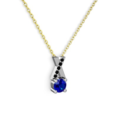 Lab safir ve siyah zirkon 14 ayar beyaz altın kolye (40 cm altın rolo zincir)