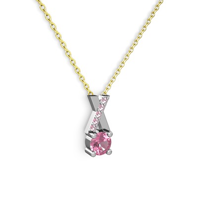 Pembe kuvars 18 ayar beyaz altın kolye (40 cm altın rolo zincir)