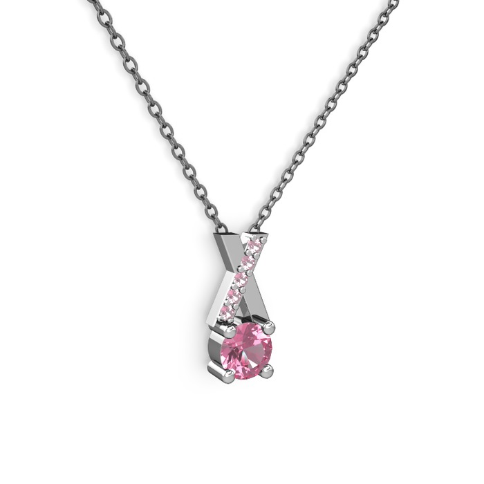 Pembe kuvars 18 ayar beyaz altın kolye (40 cm gümüş rolo zincir)