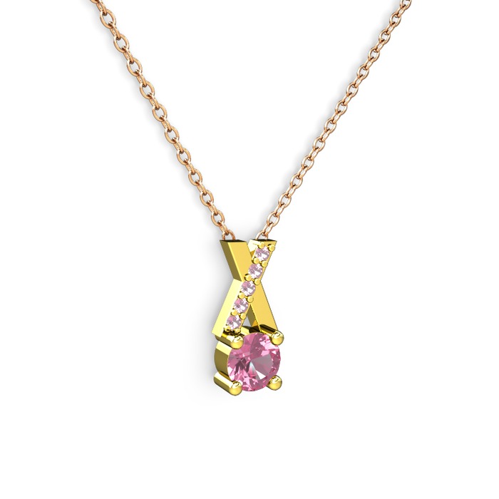 Pembe kuvars 8 ayar altın kolye (40 cm gümüş rolo zincir)