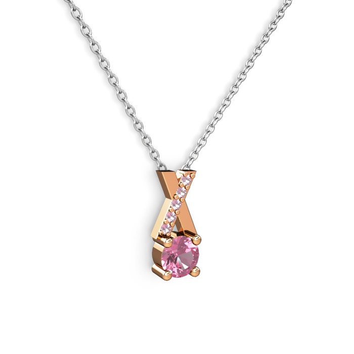 Pembe kuvars 8 ayar rose altın kolye (40 cm beyaz altın rolo zincir)