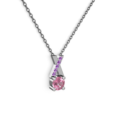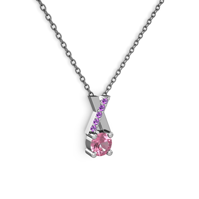 Pembe kuvars ve ametist 18 ayar beyaz altın kolye (40 cm gümüş rolo zincir)