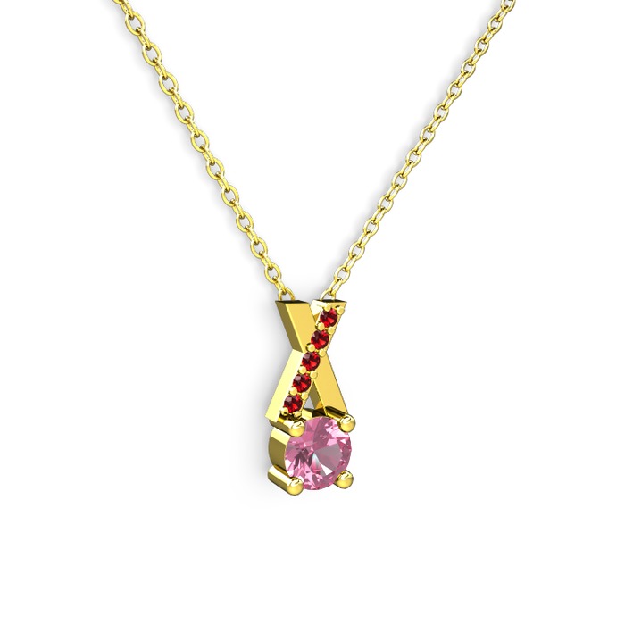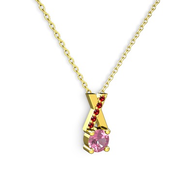 Pembe kuvars ve garnet 925 ayar altın kaplama gümüş kolye (40 cm altın rolo zincir)