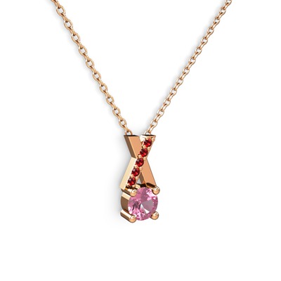Pembe kuvars ve garnet 925 ayar rose altın kaplama gümüş kolye (40 cm rose altın rolo zincir)