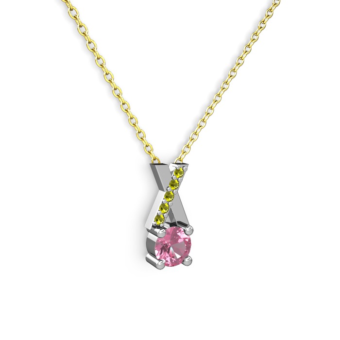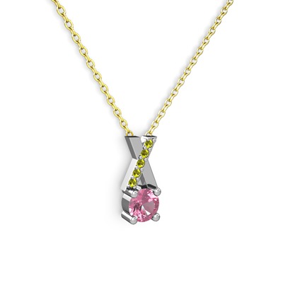 Pembe kuvars ve peridot 8 ayar beyaz altın kolye (40 cm altın rolo zincir)