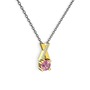 Pembe kuvars ve pırlanta 14 ayar altın kolye (0.075 karat, 40 cm gümüş rolo zincir)
