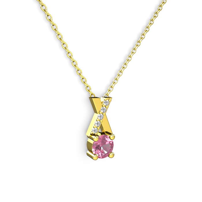 Pembe kuvars ve swarovski 14 ayar altın kolye (40 cm gümüş rolo zincir)
