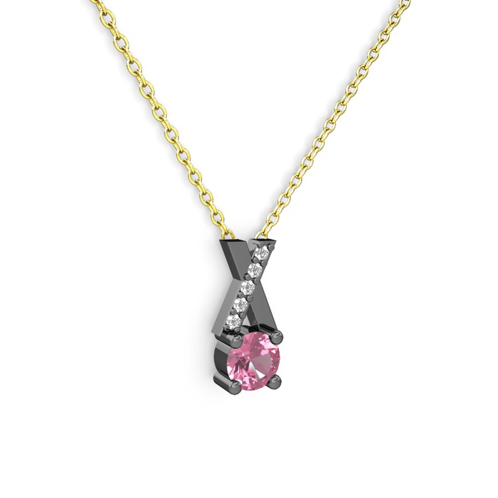 Pembe kuvars ve swarovski 925 ayar siyah rodyum kaplama gümüş kolye (40 cm altın rolo zincir)