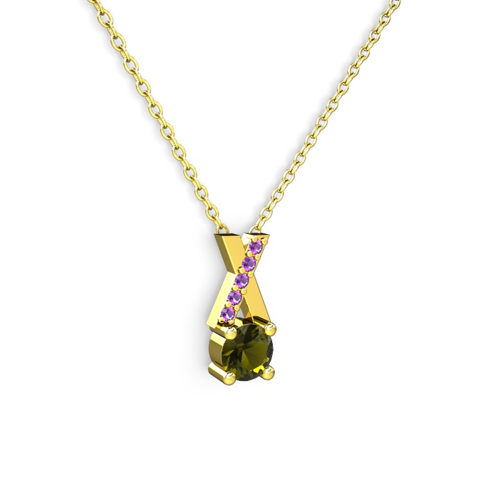 Peridot ve ametist 8 ayar altın kolye (40 cm altın rolo zincir)