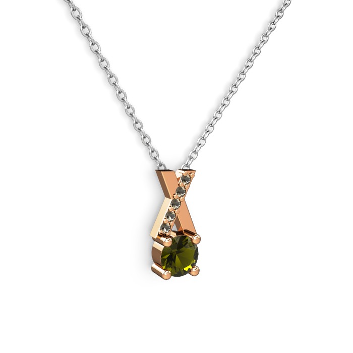Peridot ve dumanlı kuvars 18 ayar rose altın kolye (40 cm beyaz altın rolo zincir)