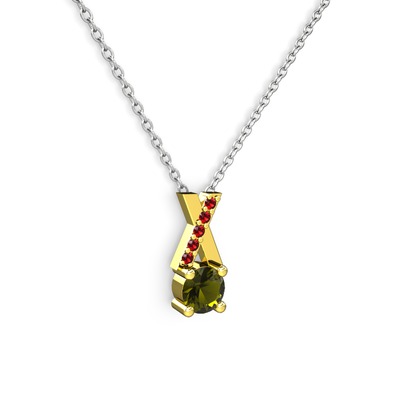 Peridot ve garnet 18 ayar altın kolye (40 cm gümüş rolo zincir)