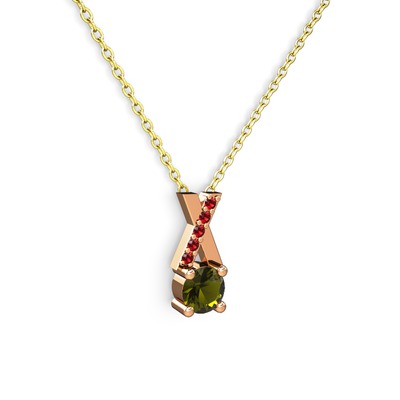 Peridot ve garnet 18 ayar rose altın kolye (40 cm altın rolo zincir)
