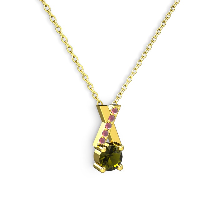 Peridot ve kök yakut 8 ayar altın kolye (40 cm altın rolo zincir)