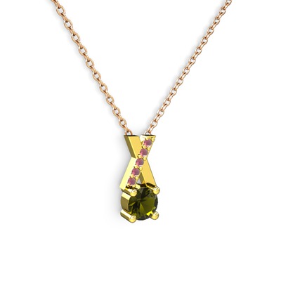 Peridot ve kök yakut 925 ayar altın kaplama gümüş kolye (40 cm rose altın rolo zincir)