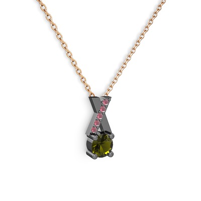 Peridot ve kök yakut 925 ayar siyah rodyum kaplama gümüş kolye (40 cm rose altın rolo zincir)