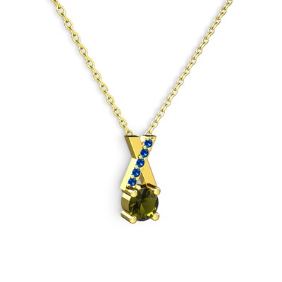 Peridot ve lab safir 8 ayar altın kolye (40 cm altın rolo zincir)