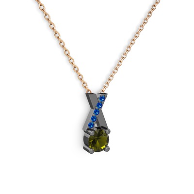 Peridot ve lab safir 925 ayar siyah rodyum kaplama gümüş kolye (40 cm rose altın rolo zincir)