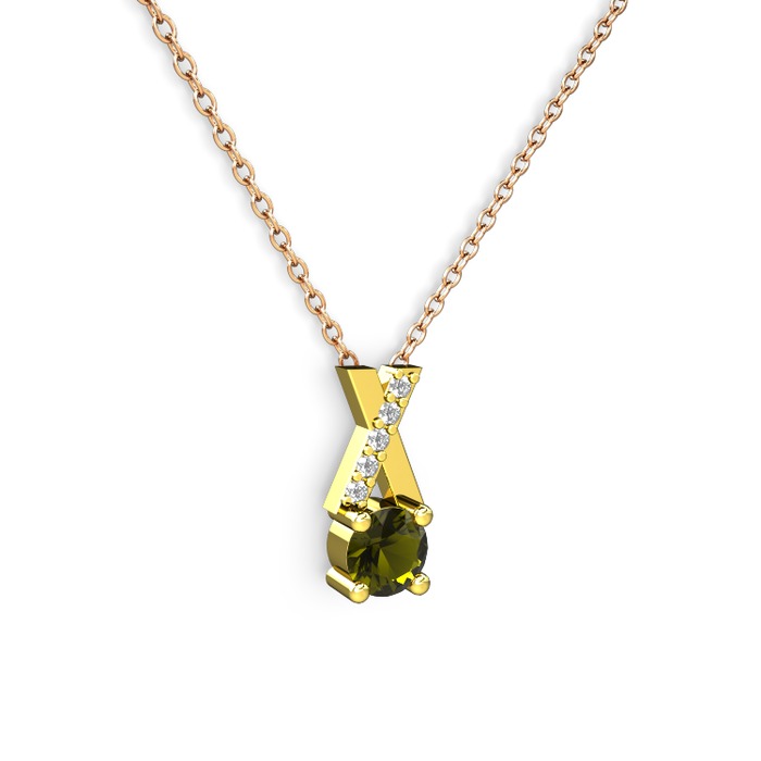 Peridot ve pırlanta 18 ayar altın kolye (0.075 karat, 40 cm rose altın rolo zincir)