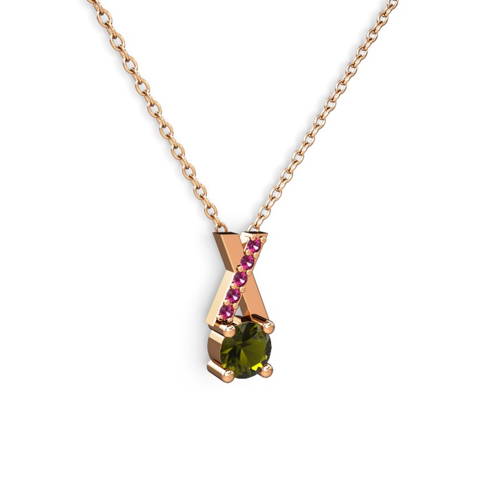 Peridot ve rodolit garnet 18 ayar rose altın kolye (40 cm rose altın rolo zincir)