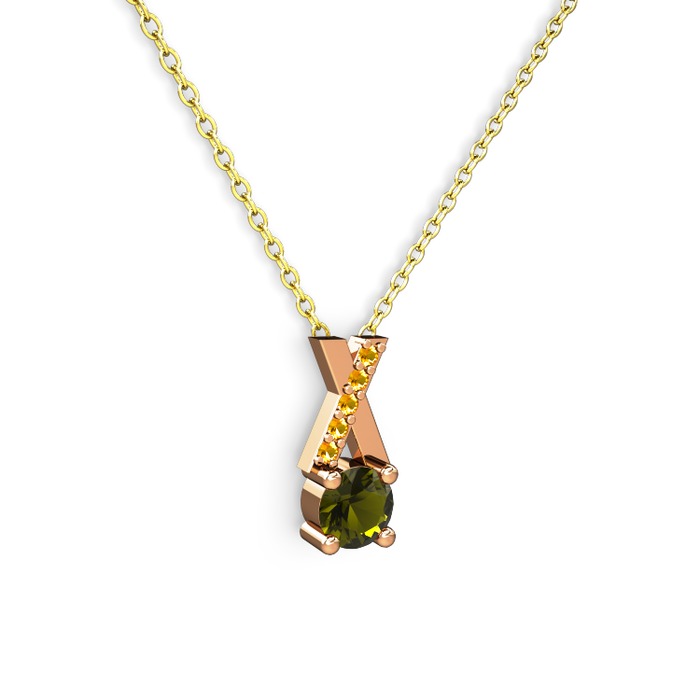 Peridot ve sitrin 14 ayar rose altın kolye (40 cm gümüş rolo zincir)