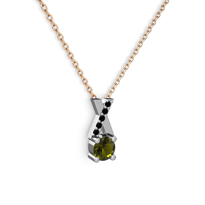 Peridot ve siyah zirkon 925 ayar gümüş kolye (40 cm rose altın rolo zincir)