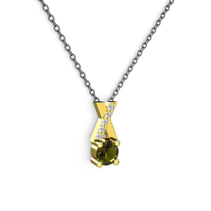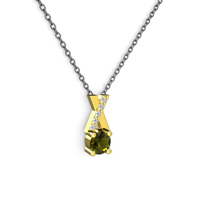 Peridot ve swarovski 8 ayar altın kolye (40 cm gümüş rolo zincir)