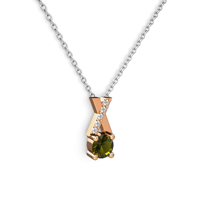 Peridot ve swarovski 8 ayar rose altın kolye (40 cm gümüş rolo zincir)