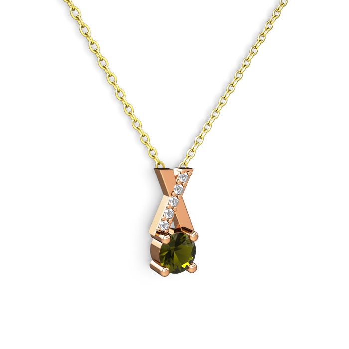 Peridot ve swarovski 925 ayar rose altın kaplama gümüş kolye (40 cm altın rolo zincir)