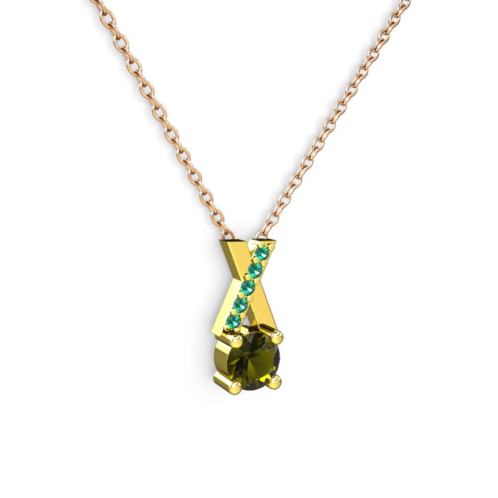 Peridot ve yeşil kuvars 14 ayar altın kolye (40 cm rose altın rolo zincir)