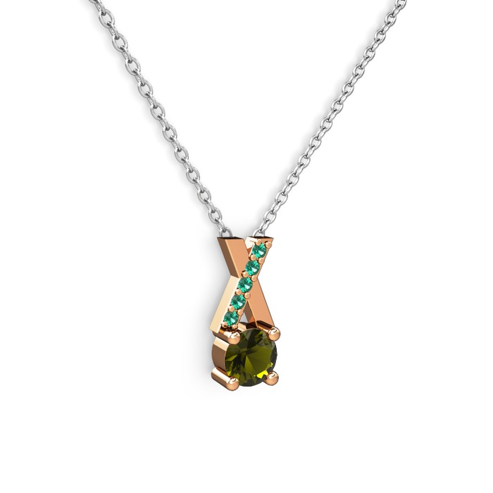 Peridot ve yeşil kuvars 8 ayar rose altın kolye (40 cm beyaz altın rolo zincir)