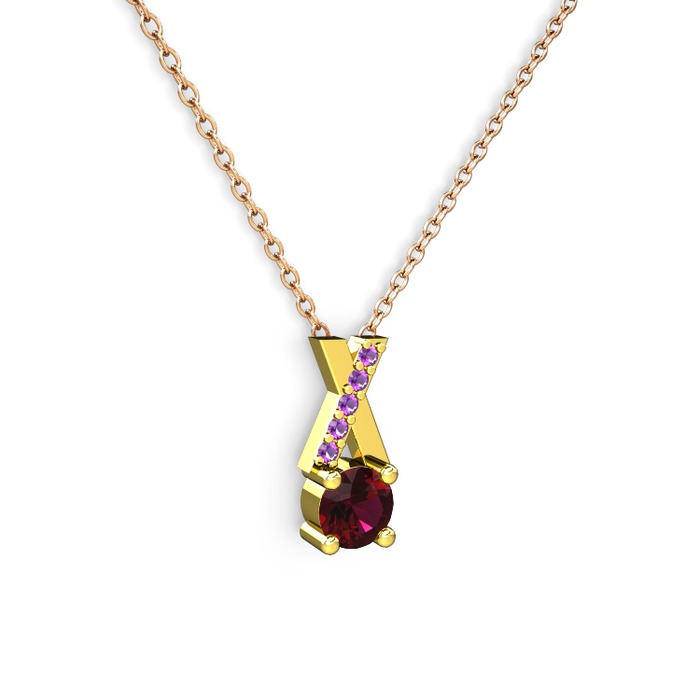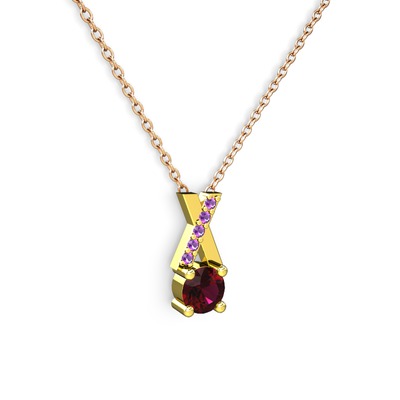 Rodolit garnet ve ametist 18 ayar altın kolye (40 cm gümüş rolo zincir)