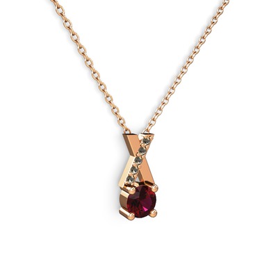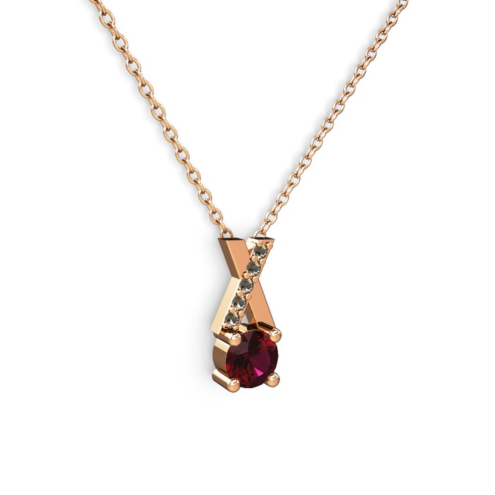 Rodolit garnet ve dumanlı kuvars 8 ayar rose altın kolye (40 cm gümüş rolo zincir)