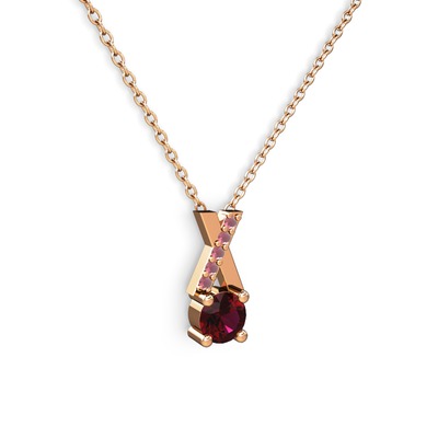 Rodolit garnet ve kök yakut 925 ayar rose altın kaplama gümüş kolye (40 cm rose altın rolo zincir)