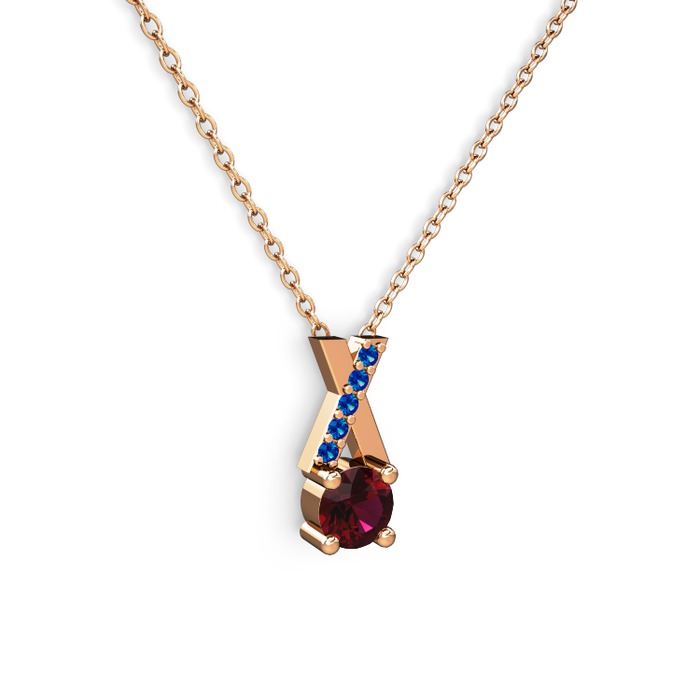 Rodolit garnet ve lab safir 925 ayar rose altın kaplama gümüş kolye (40 cm rose altın rolo zincir)