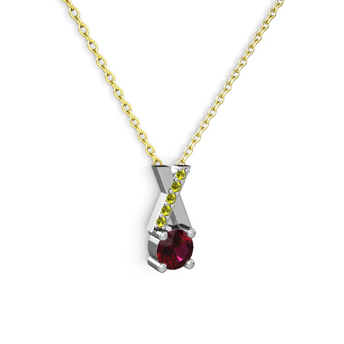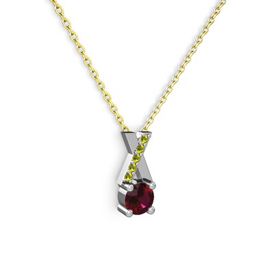 Rodolit garnet ve peridot 8 ayar beyaz altın kolye (40 cm altın rolo zincir)