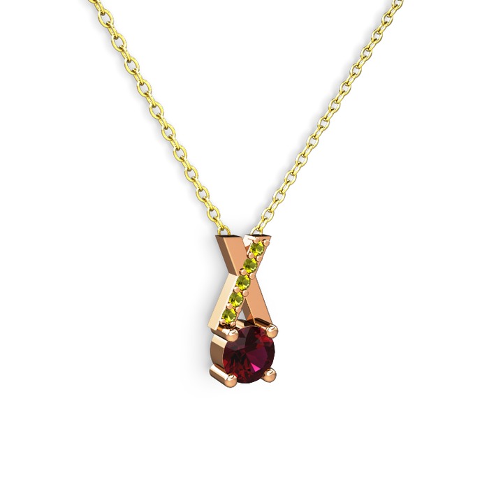 Rodolit garnet ve peridot 925 ayar rose altın kaplama gümüş kolye (40 cm altın rolo zincir)
