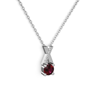 Rodolit garnet ve pırlanta 14 ayar beyaz altın kolye (0.075 karat, 40 cm beyaz altın rolo zincir)