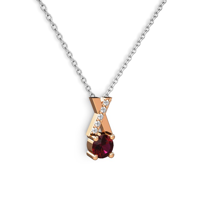 Rodolit garnet ve pırlanta 18 ayar rose altın kolye (0.075 karat, 40 cm beyaz altın rolo zincir)