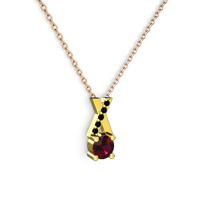 Rodolit garnet ve siyah zirkon 18 ayar altın kolye (40 cm rose altın rolo zincir)