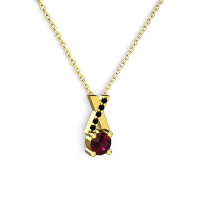 Rodolit garnet ve siyah zirkon 925 ayar altın kaplama gümüş kolye (40 cm altın rolo zincir)