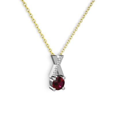 Rodolit garnet ve swarovski 925 ayar gümüş kolye (40 cm altın rolo zincir)