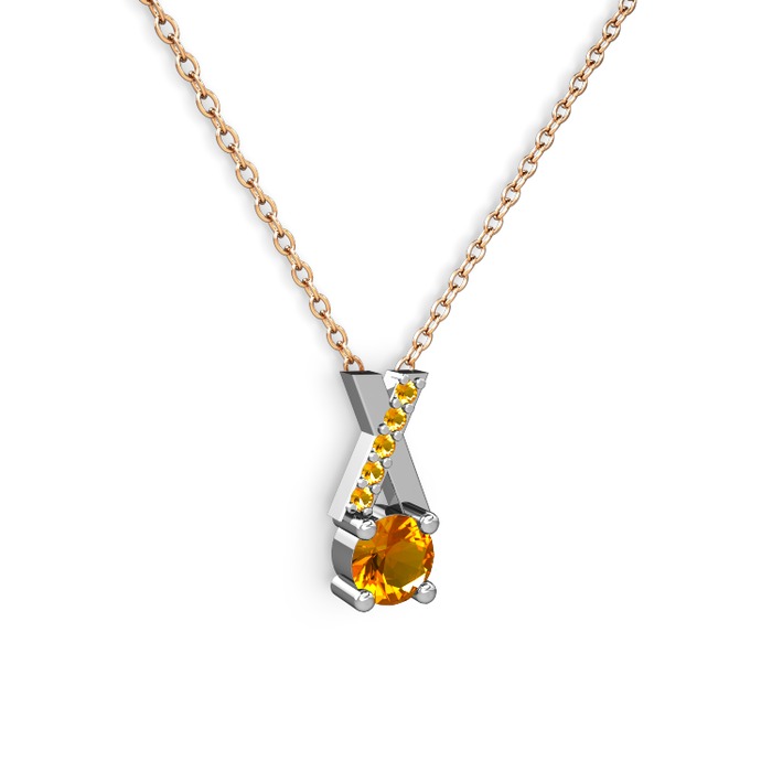 Sitrin 18 ayar beyaz altın kolye (40 cm rose altın rolo zincir)