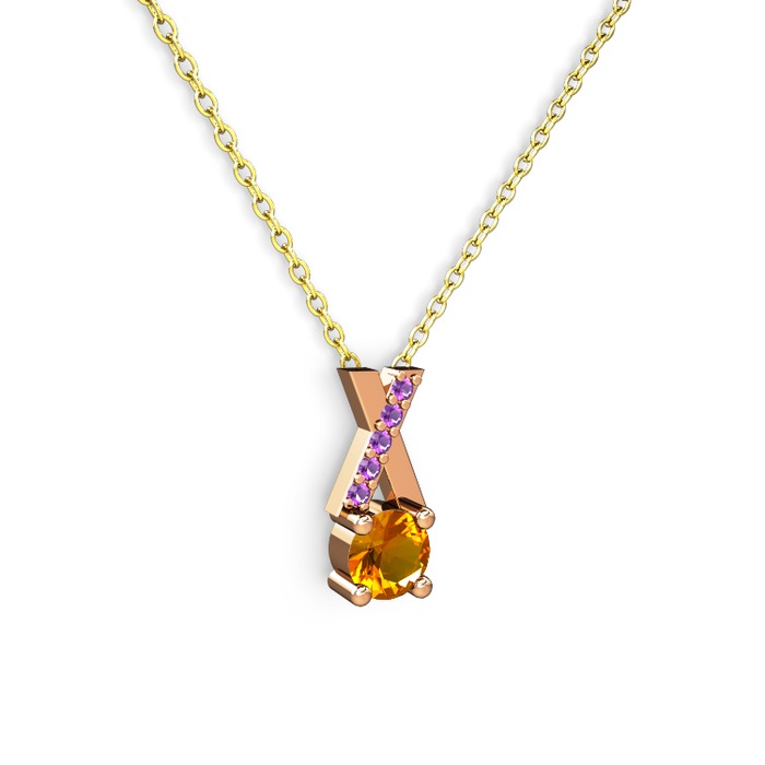 Sitrin ve ametist 925 ayar rose altın kaplama gümüş kolye (40 cm altın rolo zincir)
