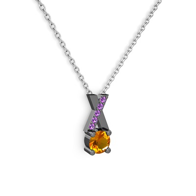 Sitrin ve ametist 925 ayar siyah rodyum kaplama gümüş kolye (40 cm beyaz altın rolo zincir)