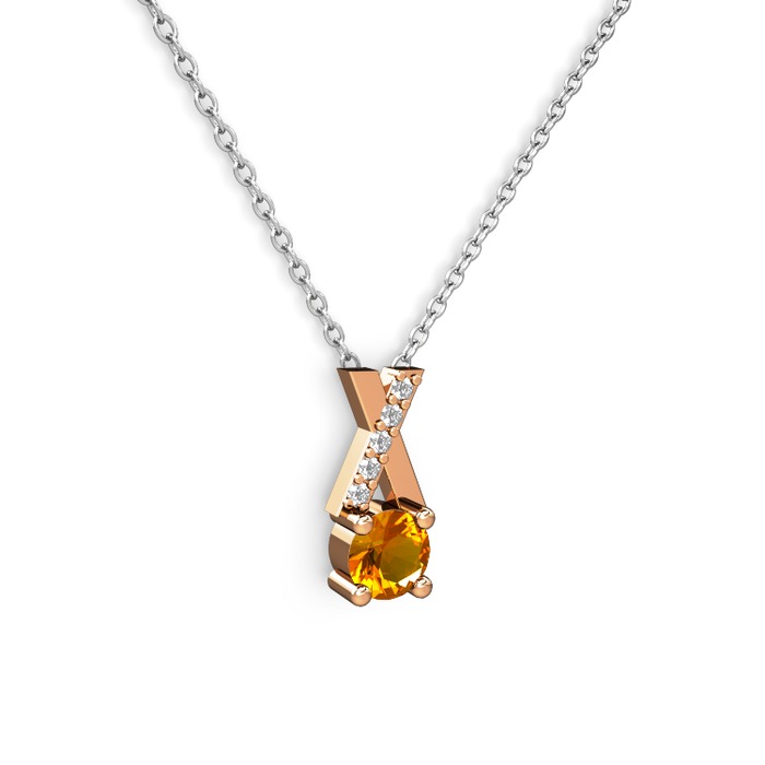 Sitrin ve beyaz zirkon 8 ayar rose altın kolye (40 cm gümüş rolo zincir)