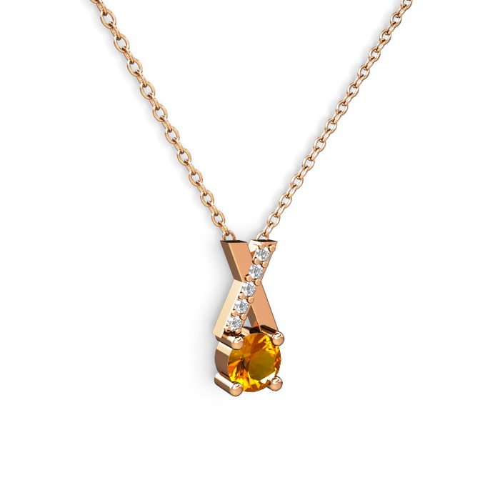 Sitrin ve beyaz zirkon 8 ayar rose altın kolye (40 cm rose altın rolo zincir)