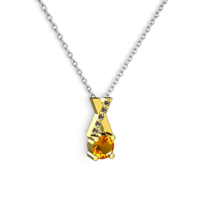 Sitrin ve dumanlı kuvars 18 ayar altın kolye (40 cm beyaz altın rolo zincir)